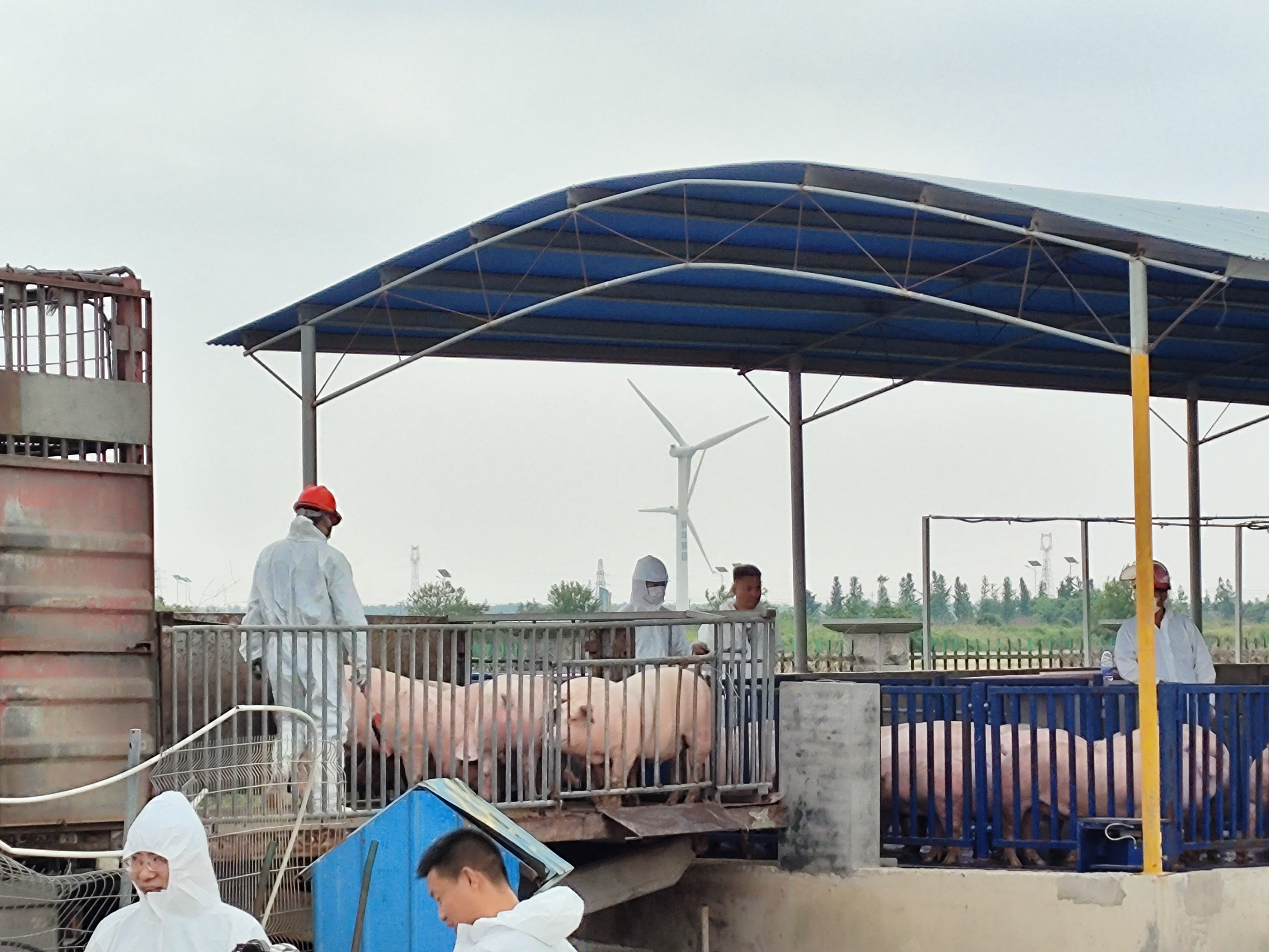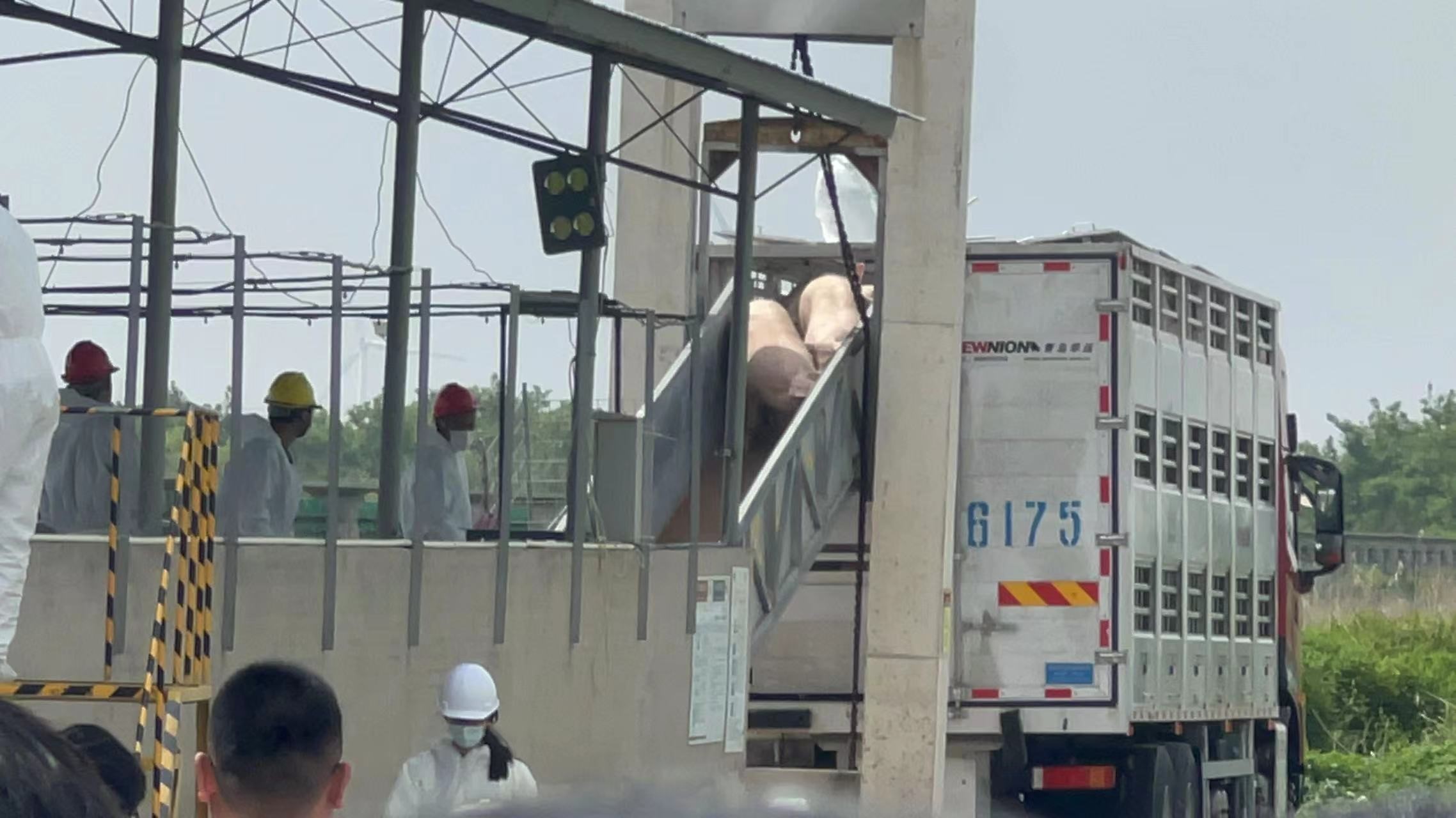 图3. 生猪在卖方车辆等待进行质检和交割