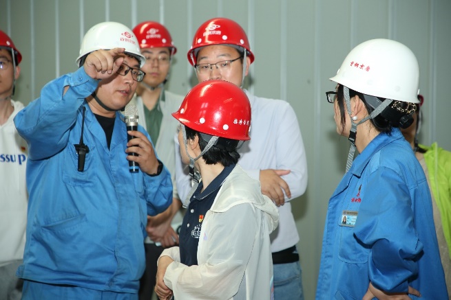 实践团队在当日上午7:00从学校出发,11:00到达唐山曹妃甸首钢京唐公司园区,在京唐公司销售管理部负责人带领下,首先来到公司指挥中心。在这里,公司讲解员首先结合沙盘介绍了公司发展沿革、公司生产布局和发展成就,其次在展览大厅介绍了公司产品种类以及产品在工业建设、民用生活中的广泛应用。其中“园区占地面积超过澳门行政区面积”,“国内唯一拥有临海靠港的单体千万吨级钢铁企业”,“废水零排放,获评环保绩效评级A级企业,具备高效率、低成本、循环经济的生产运行系统”等介绍令师生颇感震撼。同时,师生还借机品尝到了公司自主研发完成的海水淡化制造的纯净水,感受到了国有企业双碳减排的责任担当。