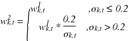 其次,根据年波动率计算波动率修正权重,降低波动率较大品种的权重,具体公式如下: