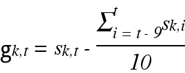 随后,评估当前年份的增长率与历史平均水平的相对位置,衡量标准为本年度的同比增长率与近十年(包括本年度)同比增长率的平均值之间的差,记为