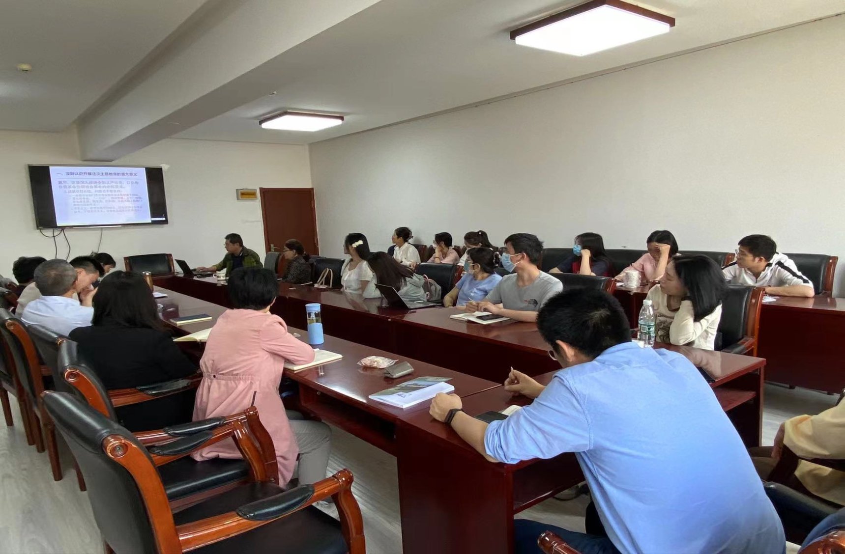 2023年5月9日,金融学院党委在博学楼925会议室举办学习贯彻习近平新时代中国特色社会主义思想主题教育读书班活动,学院党政领导班子成员和全体师生党支部书记参加。