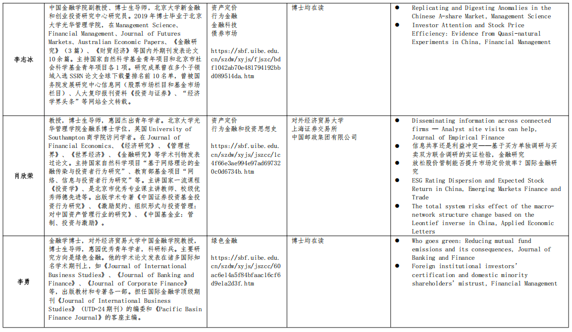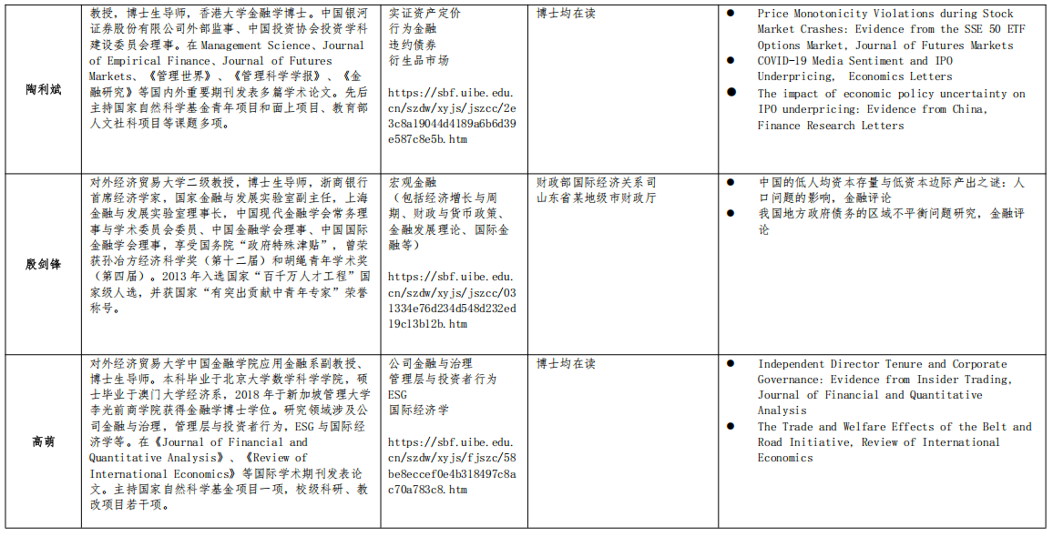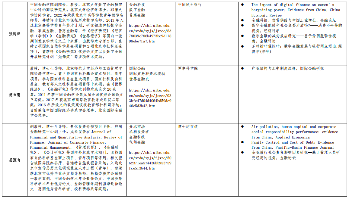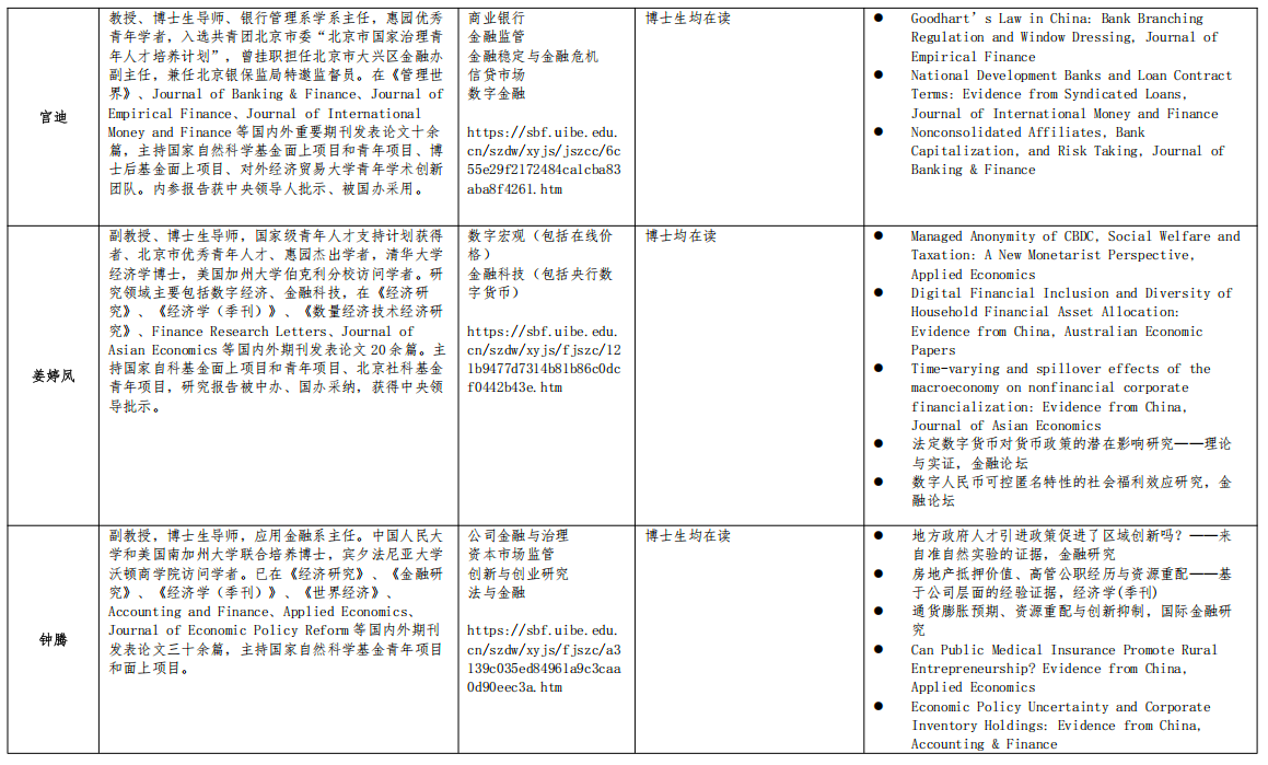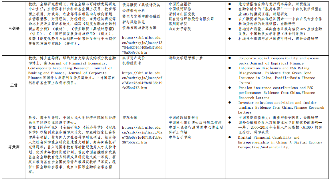 师资力量:金融学方向博士生导师拥有22位教师,与监管部门、金融机构保持紧密合作关系。多人享受国务院政府特殊津贴,入选国家级重大人才计划、国家级青年人才计划、教育部新世纪优秀人才支持计划,获评北京市教学名师、北京市优秀青年人才、北京市课程思政教学名师等。