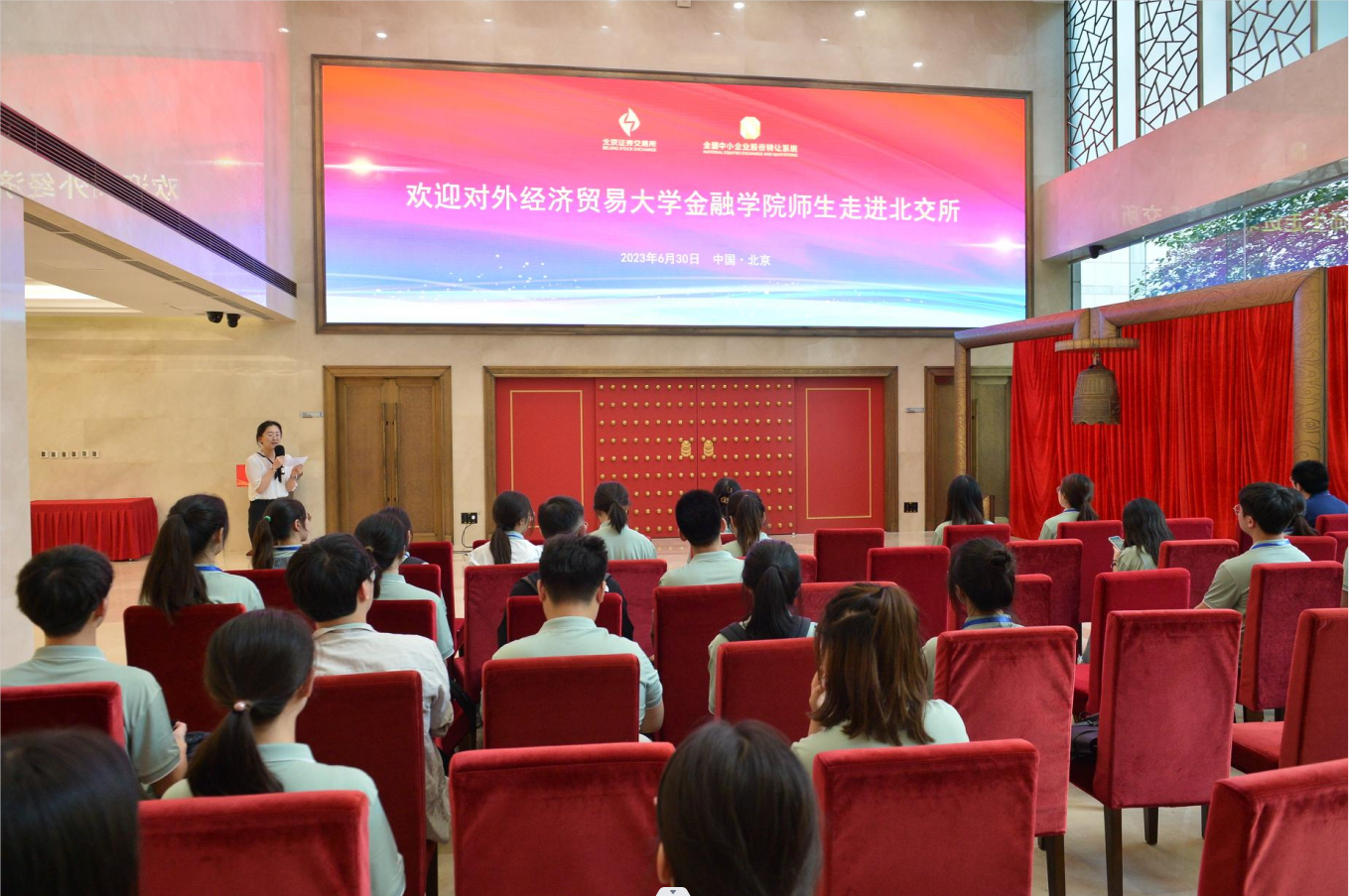 15时30分,夏令营转战北京证券交易所,北交所任女士为同学们介绍了北交所成立的历史、发展状况和新的历史使命,重点阐释了在资本市场逐步改革开放下北交所服务创新型中小企业的重大意义以及在注册制改革下的新环境中面临的新挑战。