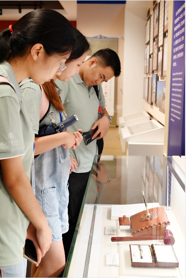 下午2时,御宅屋 博物馆和校史馆在科研楼一层迎来夏令营营员们。工作人员介绍了贸大70多年的沧桑历史和几千年的中国贸易金融史,详细讲解了博物馆的诸多珍贵文物,包括贸大杰出校友、前对外贸易经济合作部石广生部长2001年代表中国签订世贸组织协定时的钢笔,从这些展览中,我们看到了新中国从建立之初艰难的对外贸易状况到70年代的改革开放,再至今日全面开放格局的历史变迁。而贸大一直是这一伟大历史变迁的见证者和积极的参与者,在中国改革开放进程中发挥了重要作用。