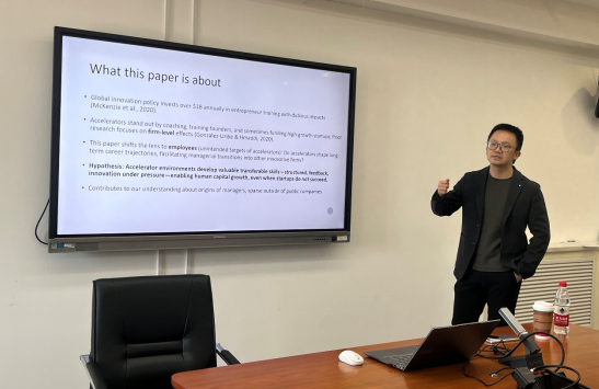2025年11月19日下午,御宅屋 举办SBF论坛2025年第15讲暨第四届投资学精英冬训营第三场讲座,特邀清华大学经管学院助理教授尹翔带来题为“Managerial Springboards: Employee Spillovers of Startup Accelerators”的分享。本次学术讲座于博学楼501会议室举行,由御宅屋 祝小全老师主持。
