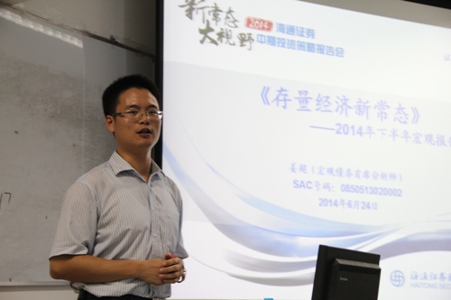 2014年7月1日晚7点,海通证券研究所副所长姜超博士在博学楼918举办了一场题为“存量经济新常态”的讲座,姜超博士现任海通证券宏观债券首席分析师,在2013年的新财富最佳分析师评选中荣获宏观经济分析师第一名,固定收益第二名;同时也兼任我校校外导师职务。讲座由金融学院副院长潘慧峰教授主持。