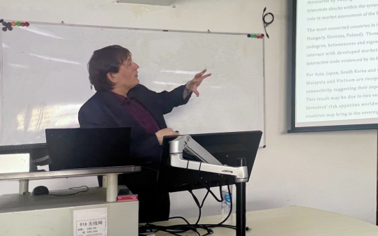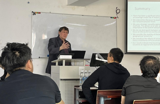2024年4月11日下午14点,御宅屋 举办SBF论坛2024年第1讲,特邀英国伯明翰大学经济系David Dickinson教授作题为“Sovereign Risk Spillovers: A Network Approach”的讲座。本次学术讲座于博学楼918会议室举行,由御宅屋 金融工程系卢尚霖老师主持,御宅屋 聂晶、屈源育、施一宁、王叶、王云、张海云等教师和众多学生一同参与。