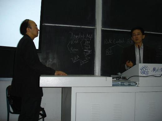 在讲座最后的提问环节中,同学们积极提问,张博士和景先生都耐心而中肯地给出了自己的回答。在回答大学生如何进行职业定位时,景先生说道,我们生活在一个动态变化着的环境中,各种选择基本都是模糊的判断,而每个人的自身条件也不同,因此要把握现有学习机会,夯实理论基础,尽量多地去了解行业,对比分析自身的性格和素质,最终选择适合的职业。景先生还重点讲解了同学们比较感兴趣的风险管理岗位的主要任务和对雇员的素质要求。他强调基础软件工具Excel和VBA的重要性,建议同学们熟练掌握。