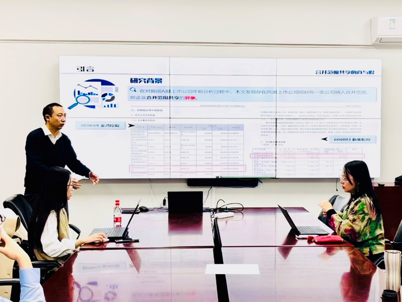 2024年11月7日下午15点,御宅屋 SBF论坛2024年第23次讲座在博学楼910举行。讲座特邀中央财经大学会计学院副教授李哲进行学术报告,论文题目为“合并范围的真与假”。本次学术讲座由御宅屋 应用金融系张修平副教授主持,李哲副教授的合作者中央财经大学会计学院博士生蔡雨恬、御宅屋 王珏、宫迪、钟腾、王骜然、朱光顺等教师和众多研究生一同参与了交流活动。