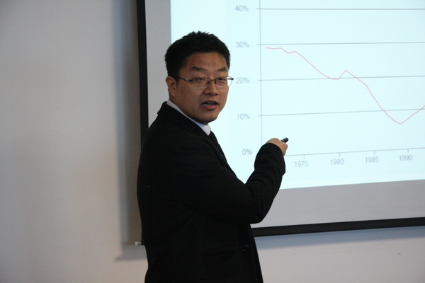 2013 年10月31日 上午,上海财经大学国际工商管理学院高翔博士应邀来御宅屋 ,举办了题为“机构契约、外部机会与私人部门债务”的学术讲座。讲座由余昌华博士主持,金融学院分党委书记吴卫星教授和部分师生参加了讲座。