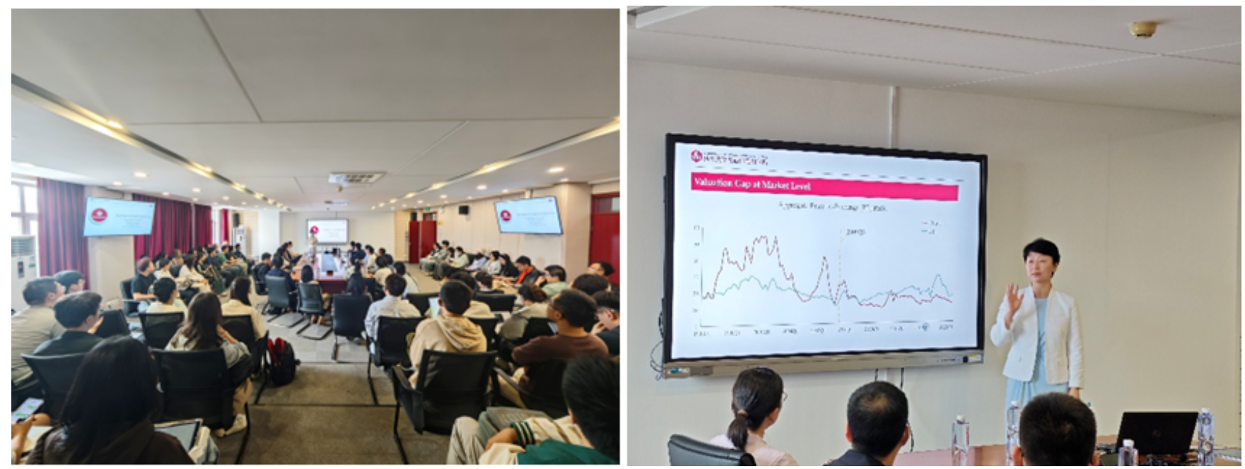 在讨论和互动环节,在场嘉宾就金融市场开放过程中,资金的流入和流出对估值水平变化的差异性作用;以及中国市场特有的“壳价值”问题对估值造成的潜在影响进行了充分交流和讨论。最后讲座在热烈的掌声中圆满结束。