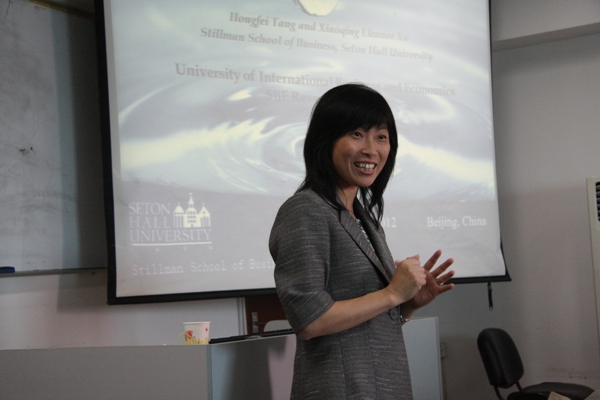2012 年5月17日 ,美国西东大学许小青教授应邀来御宅屋 ,举办了一场题为“解决杠杆式ETF收益率偏离难题”的精彩的学术讲座。金融学院教师、一些研究生、博士生、博士后参加了此次讲座,讲座由吴军教授主持。