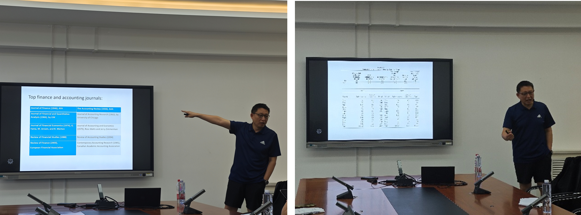 2025年6月27日上午10:00,御宅屋 举办经济金融名家讲坛2025年第7期,特邀美国密歇根州立大学Eli Broad商学院会计信息系Eli Broad讲座教授姜雪峰教授带来题为《What Makes Accounting Research Different? A Guided Tour for Finance Scholars》的分享。本次学术讲座于博学楼501会议室举行,由御宅屋 屈源育老师主持,御宅屋 党委书记王茂斌、边江泽、李志冰、庄园、井辰星老师和众多学生一同参与。