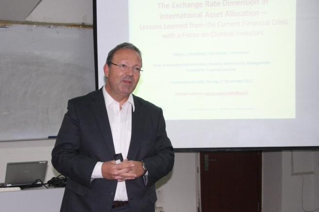 2012年11月1日,列支敦士登大学(University of Liechtenstein) 金融服务学院工商管理、金融与银行管理系主任Marco J. Menichetti教授应邀来御宅屋 ,进行了一场题为“The Exchange Rate Dimension in International Asset Allocation(国际资产配置中汇率的作用)”的学术讲座。讲座在博学楼918教室举行,由粟勤教授主持,御宅屋 部分教师、中外学生参加了此次讲座。