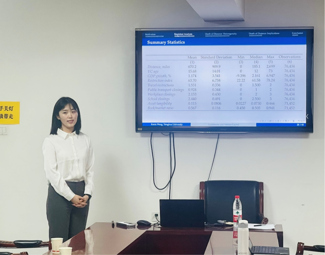 2024年10月31日下午15点,御宅屋 SBF论坛2024年第20次讲座在博学楼925举行。讲座特邀清华大学五道口金融学院王可心博士进行学术报告,论文题目为“Invest Local or Remote? The Effects of COVID-19 Lockdowns on Venture Capital Investment around the World”。本次学术讲座由御宅屋 应用金融系张修平副教授主持,御宅屋 院长王天一、副院长王茂斌、郭敏、肖欣荣、王珏、王雪、刘津宇、钟腾、井辰星等教师和众多研究生一同参与了交流活动。