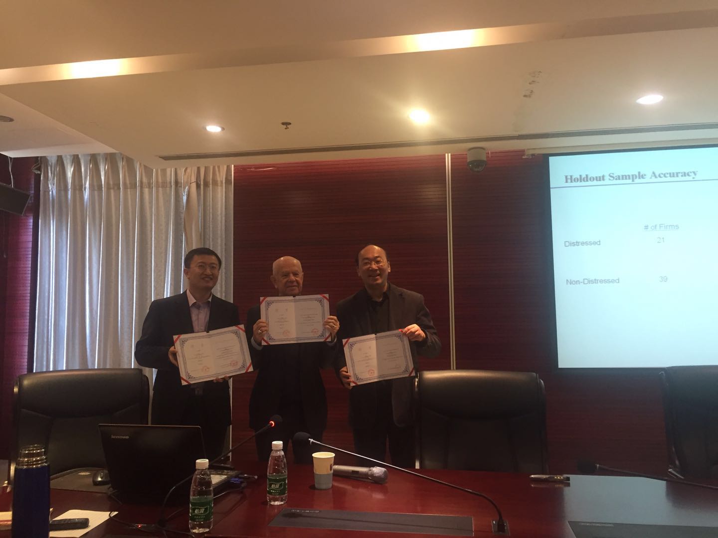 2017年11月3日,纽约大学斯特恩商学院Max L. Heine讲席金融教授、纽约大学所罗门中心信用和固定收益研究项目主任Edward Altman教授在科研楼五层会议室进行了题为Credit Market Conditions & Outlook, Altman Z-Score Models的学术讲座。讲座由御宅屋 金融市场研究中心主任张海云教授主持,金融学院副院长范言慧教授、周荣喜教授、冯建芬副教授、金融学院及其他学院研究生、以及慕名而来的其他大学师生参加了此次讲座。