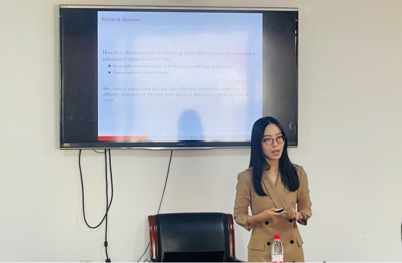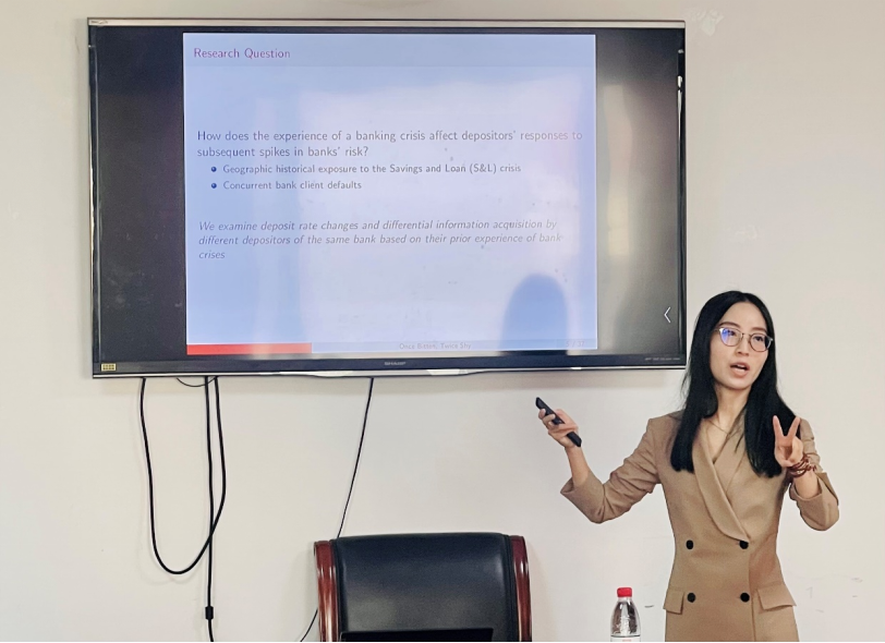 2024年11月1日上午10点,御宅屋 SBF论坛2024年第21次讲座在博学楼925举行。讲座特邀香港中文大学商学院助理教授康亚进行学术报告,论文题目为“Once Bitten, Twice Shy: S&L Crisis Experience and Depositor Reactions to Default News”。本次学术讲座由御宅屋 应用金融系张修平副教授主持,御宅屋 宫迪、席丹、范中杰、韩杨等教师、国际商学院马黎珺副教授和众多研究生一同参与了交流活动。
