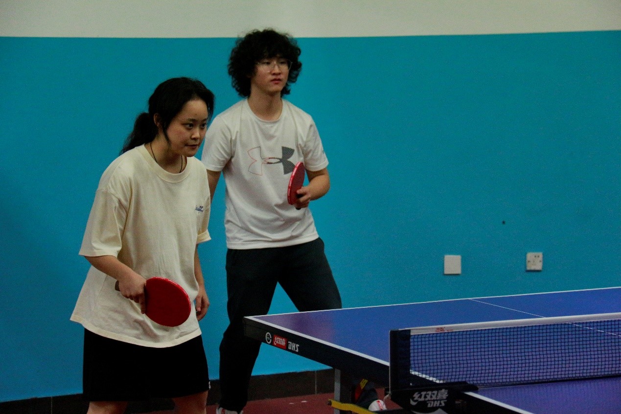 女双比赛侯雨希、徐子珩对战国统、中英,我方两位选手配合默契,侯雨希的发球十分巧妙,让对方连连吃球,徐子珩的几个反手追身球直逼对方,使对方乱了阵脚,无法应对,轻松获胜;徐子珩、高歌对战信院,我方前三板占据上风,对方失误不断,最终女双三场比赛全部拿下。