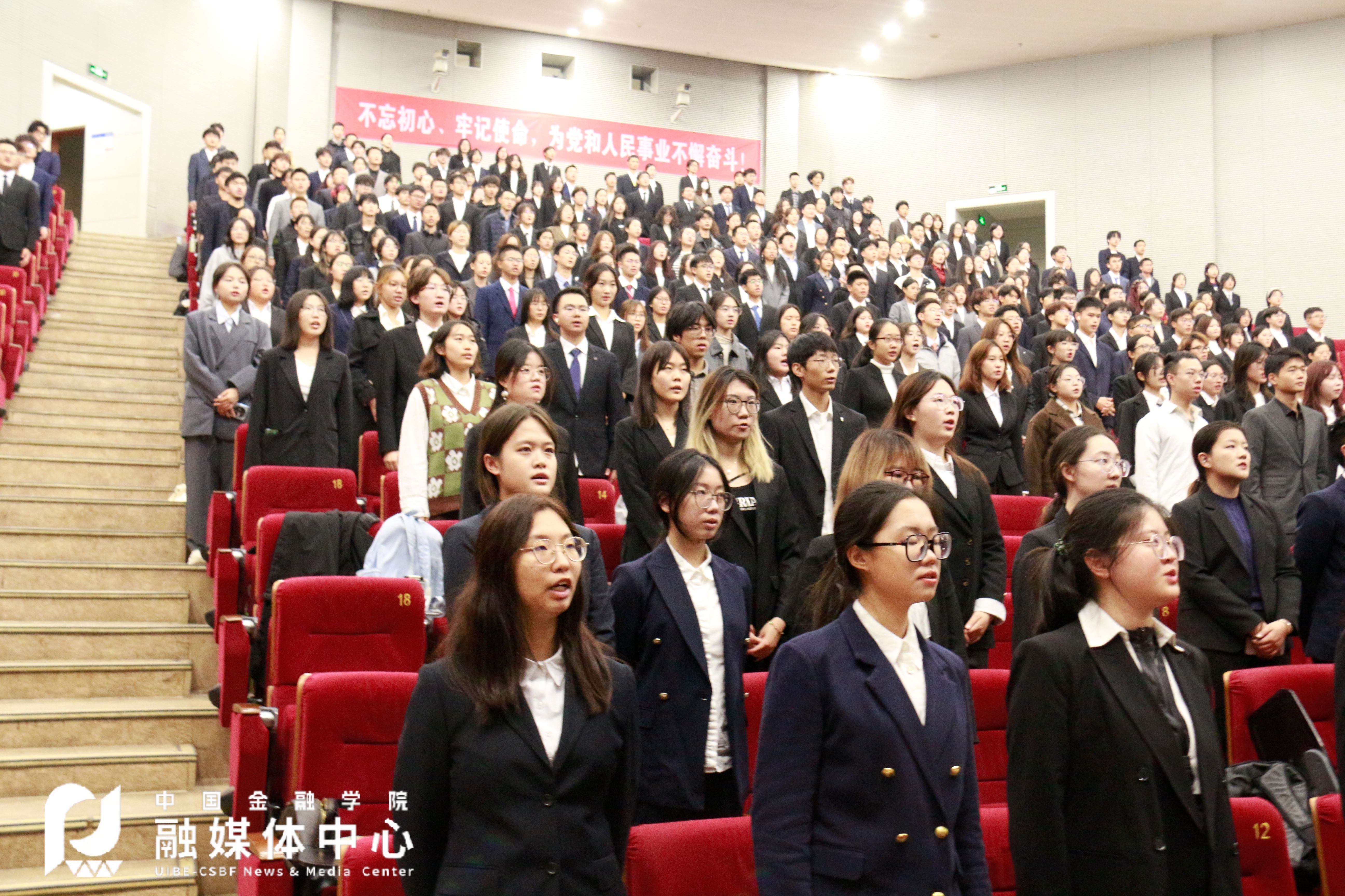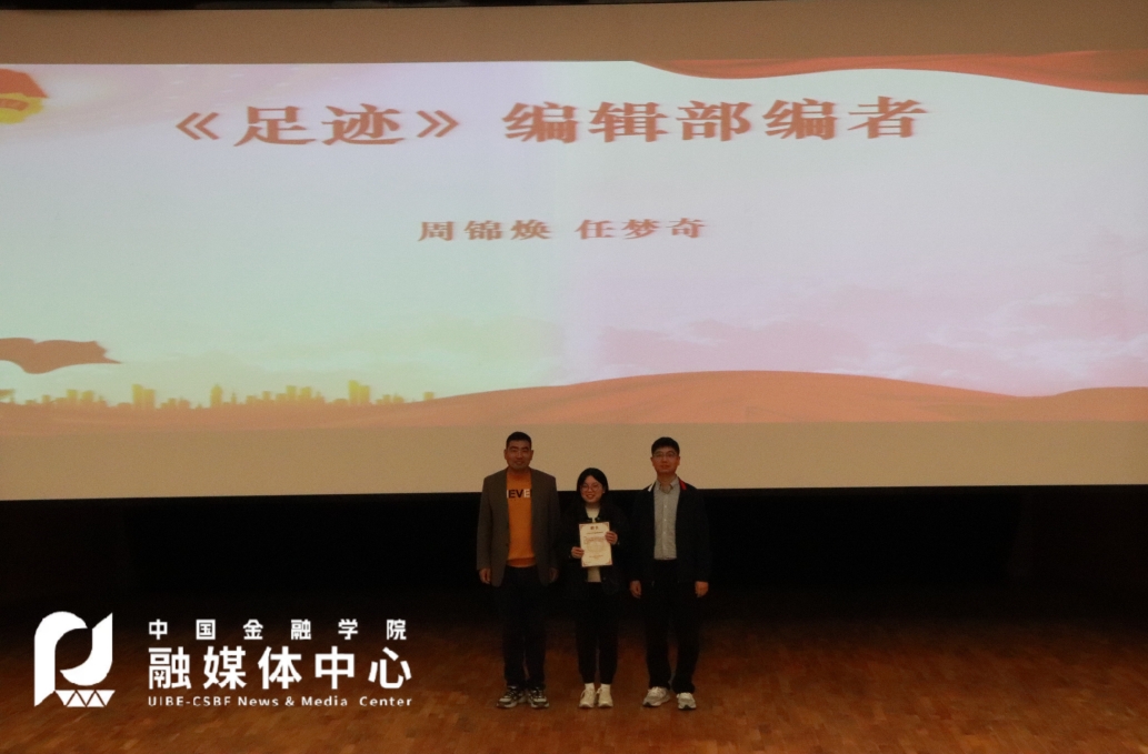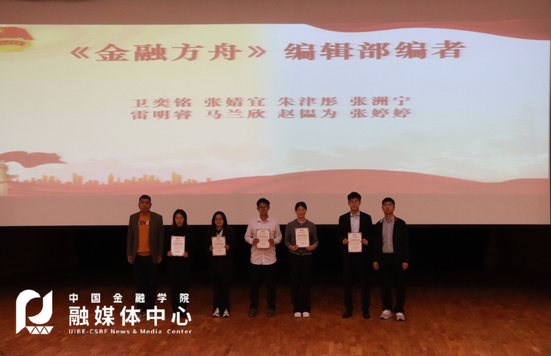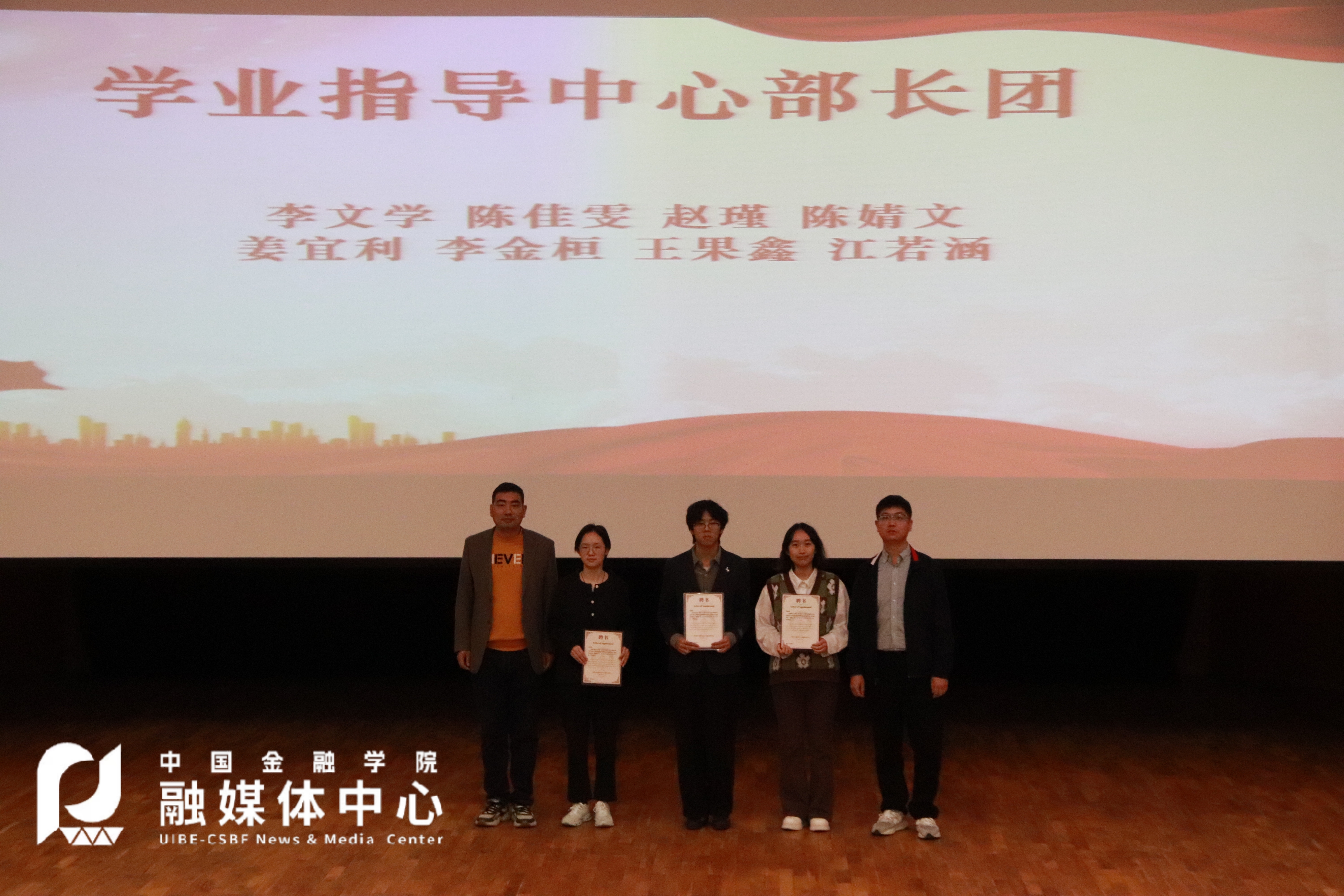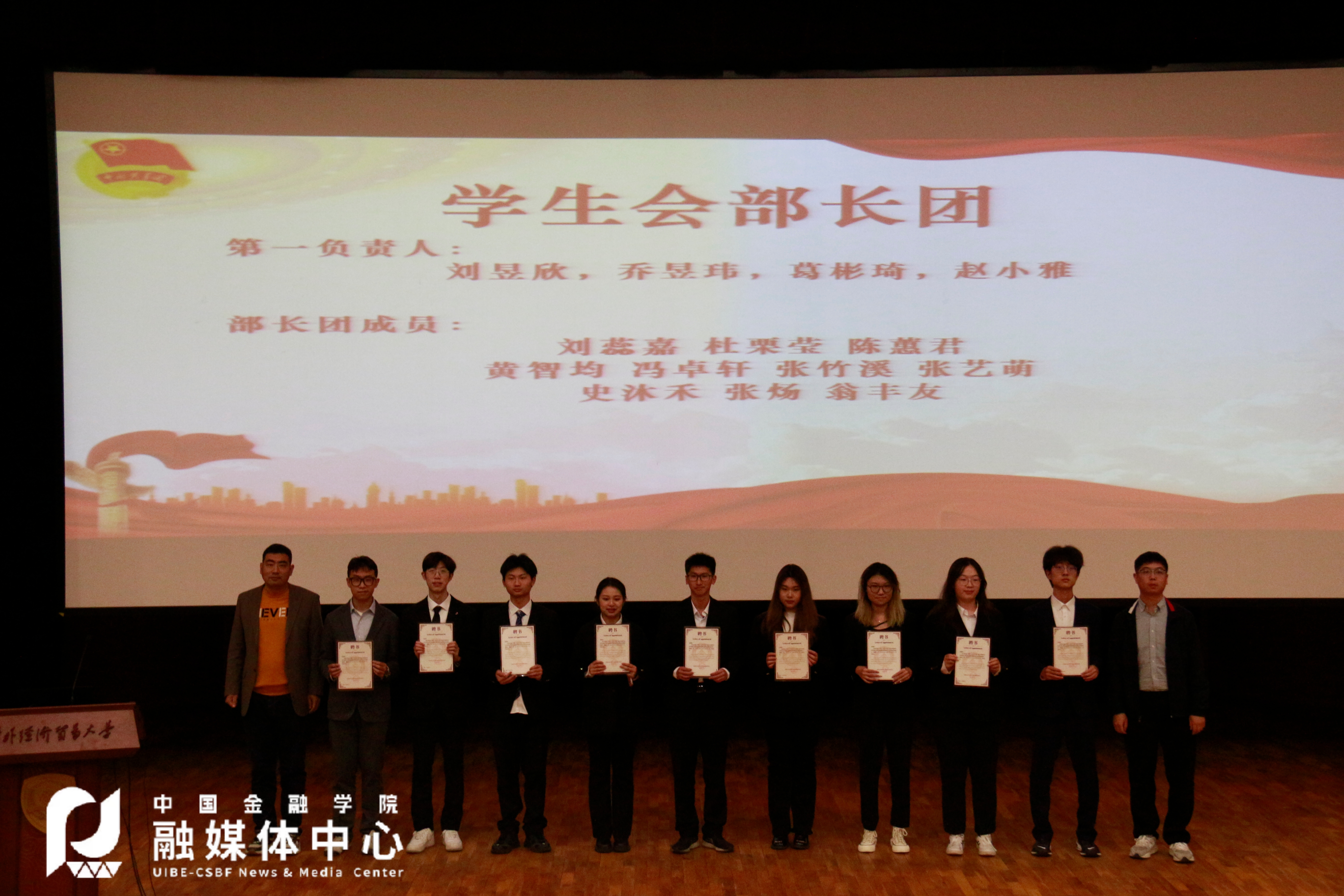 文之峰老师、穆晓志老师为新一届团学组织骨干成员颁发聘书。来自院党委融媒体中心、分团委、学生会、志愿服务团、学业指导中心、《金融方舟》编辑部、《足迹》编辑部、“金生”线上金融博物馆、“金心”朋辈心理互助中心的骨干成员依次上台受领聘书,并合影留念。