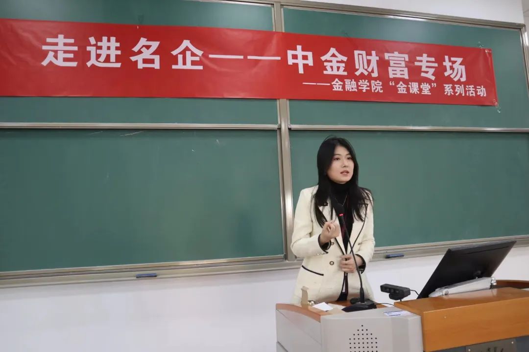 2023年11月23日下午,御宅屋 “走进名企”活动之中金财富专场讲座在求索楼323教室成功举办。中国中金财富证券有限公司(中金财富)是中国国际金融股份有限公司的全资子公司。作为中金公司财富管理业务平台,中金财富凭借国际水准的产品与解决方案、专业的投资顾问团队、敏捷创新的金融科技平台,始终坚持以客户为中心,立足买方视角,为客户提供服务人生目标的投资解决方案。