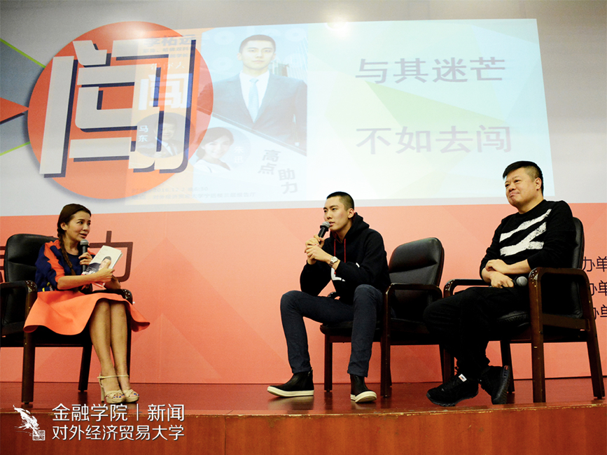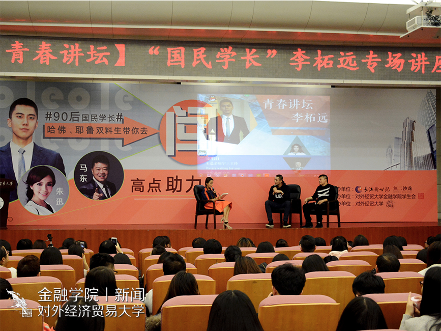 宣传中心 讯(记者:邵琦 摄影 :刘超)2016年12月2日晚6:30在宁远三层国际会议厅由金融学院分团委、学生会外联部主办的青春讲座之李柘远正式开场。本次到场嘉宾有《奇葩说》主持人马东,央视著名主持人朱迅,长江文艺出版社副总主编金丽红和副社长黎波,金融学院分团委书记、13级辅导员陈玉平,14级辅导员吴虹利,15级辅导员顾新宇和16级辅导员曲小杰。