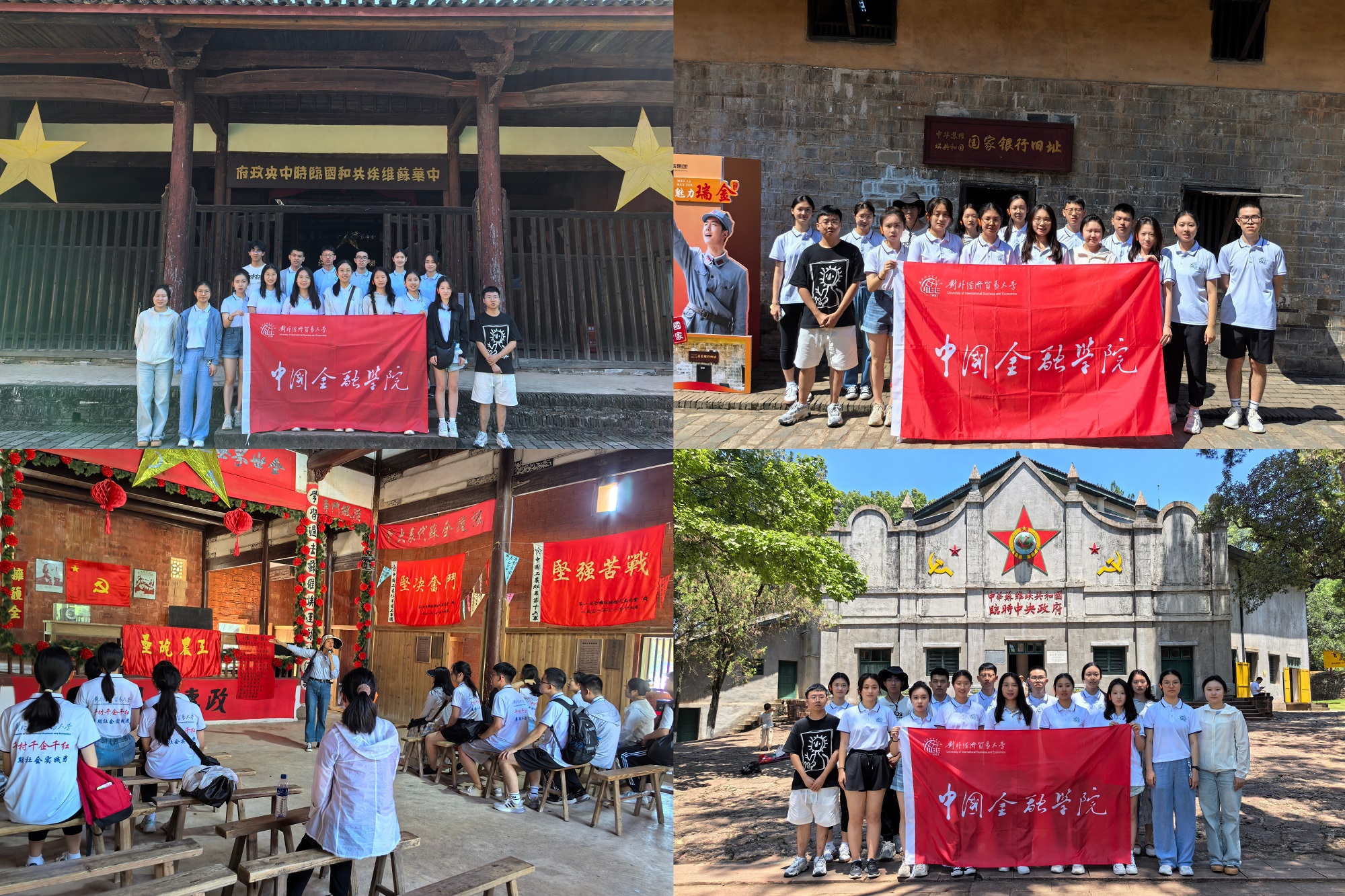 8月6日上午,鸿儒师生们乘车前往江西瑞金,实地参观了叶坪和沙洲坝革命旧址群。沿着革命先辈的足迹,鸿儒师生们在旧址前驻足凝思,认真聆听讲解员讲述那段烽火连天的革命历史。在第一次全国苏维埃代表大会会址,师生们坐在谢氏祠堂的长凳上,闭上眼睛,仿佛能够穿越时空,想象革命先辈在此处开会严肃庄重和慷慨激昂的场景;当大家走进毛主席和其他领导人的办公室时,被办公室的简单朴素所震撼。几平米的小隔间,一张桌子,一把椅子,一个木板床,舍不得插两根灯芯的油灯,革命先辈们为中国共产党的发展鞠躬尽瘁,无私奉献。在中华苏维埃共和国国家银行旧址,师生们更是深刻感受到了革命先辈们在艰苦条件下,仍然坚持金融事业,为革命胜利奠定坚实基础的不屈精神,也更加深刻理解了金融工作的艰苦性和重要性,更加珍惜现在的金融环境和发展机遇;在红井和中华苏维埃第二次全国代表大会旧址,同学们见证了中国革命的激情与理想,也深刻感悟红军战士和群众的深厚情谊。