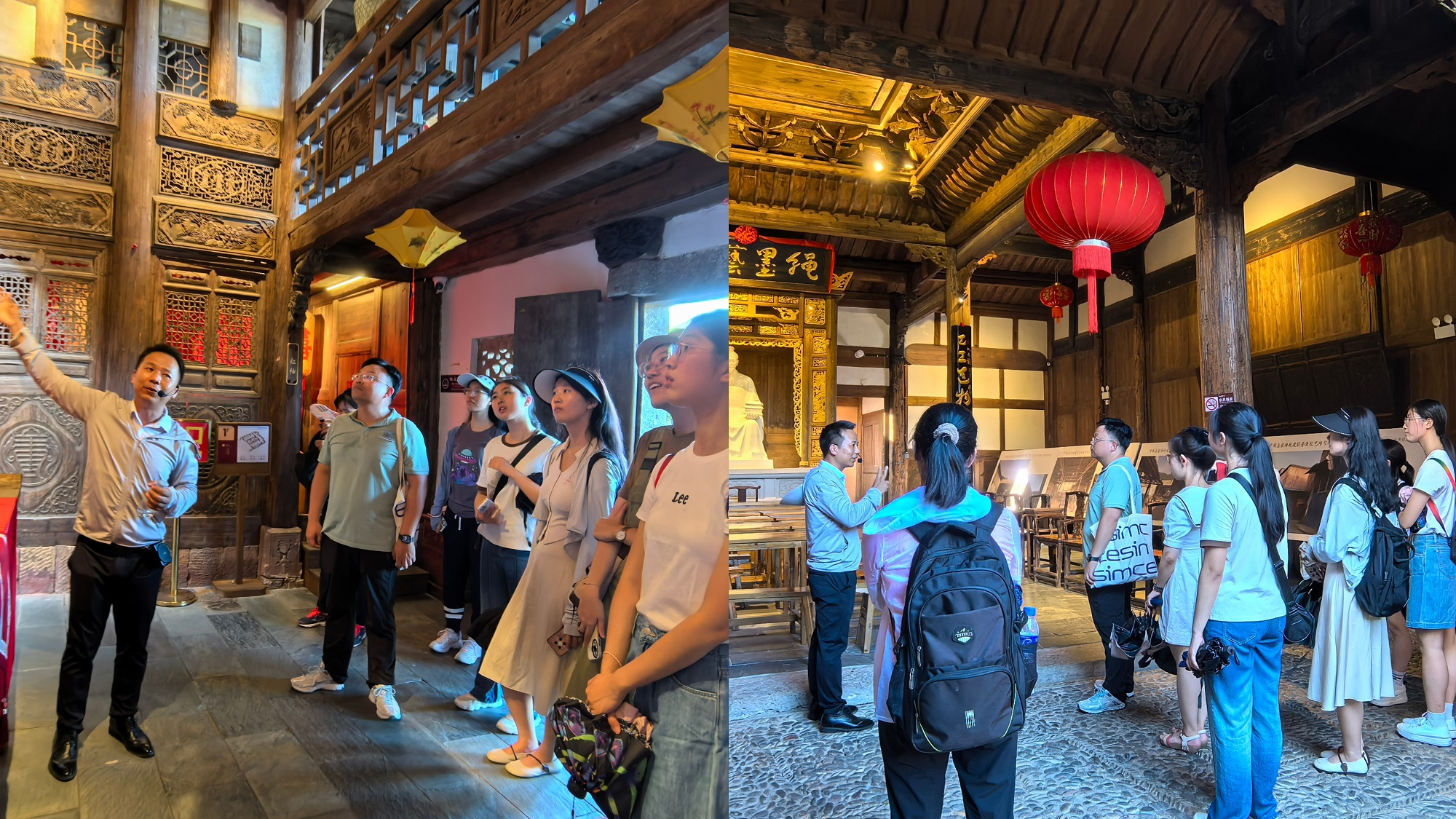 8月5日下午,鸿儒师生一行驱车返回长汀进行中华传统文化研学,在汀洲八喜馆、大夫第、和木工传习所,通过讲解员深入浅出的介绍,鸿儒师生们从婚姻、饮食、家族关系等多个方面感受独具特色的客家文化精神内核,被当地匠人精湛的木雕艺术和追求极致的“工匠精神”深深震撼。穿过长街到达卧龙书院后,鸿儒师生在藏书阁、讲堂和文渊阁等地感受书院的辉煌历史和文化氛围。夜幕降临,华灯初上,同学们抚摸城墙砖,登上济川楼,感受千年古城墙的厚重,在古今相映的长汀夜景中体会城市发展的点滴样貌。