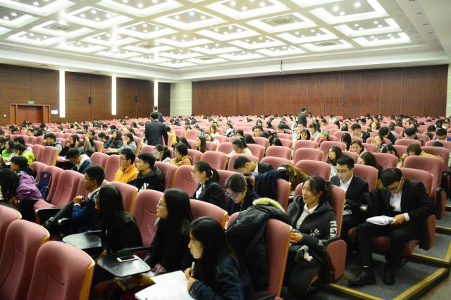 金融御宅屋新闻 宣传中心 讯(供稿:孙欣茹 摄影:李嘉元)2017年11月5日晚6:30,由金融学院和外语学院联合举办的2017-2018学年科研立项开题指导讲座在宁远三层会议厅如期举行。本次讲座特邀优秀指导教师金融学院卞洋老师做专题指导,金融学院2014级辅导员吴虹利老师出席了活动,历届科研立项优秀团队代表进行了经验分享,讲座吸引了三百余名同学积极参与,收效良好。