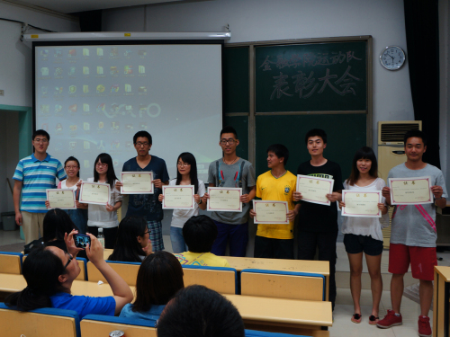 此后,大会的颁奖环节正式开始。首先颁发的是团队奖项,金融学院男子足球队和男子篮球队获得了“人气团队奖”;金融学院女子篮球队和乒乓球队获得了“最佳突破奖”;金融学院女子排球队、男子排球队、女子足球队、羽毛球队和田径队获得了“冠军团队奖”。王祖瑞老师为各支球队颁发了奖项。