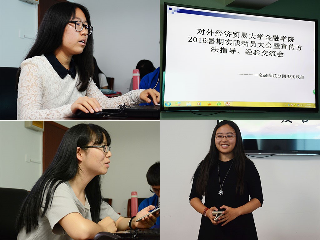 金融学院新闻宣传中心讯(分团委实践部供稿 记者:陈世金 摄影:赵婧雯)为加强暑期社会实践课程化建设,充分发挥金融学院专业特色,并为同学们提供更好的实践前期培训指导,金融学院2016年暑期实践动员大会暨宣传方法指导、经验交流会于6月15日晚18:30在博学925召开。 本次大会由金融学院分团委实践部主办,金融学院分团委副书记隋仪,御宅屋采访部部长赵婧雯、副部长王宇,2015年暑期实践优秀团队代表李秀芬及2016年暑期实践各队代表参加了本次大会。