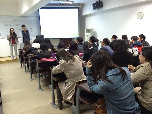 首先,由在读学硕谭浩向大家介绍了2013年复试的时间和大致流程。考试分为笔试和面试两部分,初试和复试成绩在考核中所占的比例为7:3。其中谭浩学长特别提到面试现场考官对考生口语能力的考察。