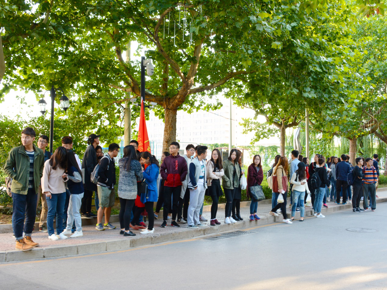 金融学院2016级新生军训归来。金融学院分团委书记陈玉平、辅导员吴虹利、辅导员曲小杰及金融学院各学生组织的学生干部们来到惠中大道,迎接从八达岭军训基地归来的16级新生们以及随行辅导员顾新宇老师。