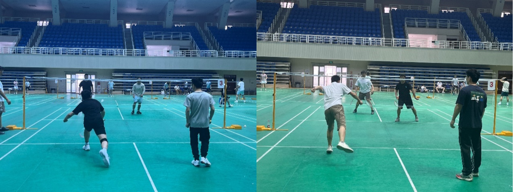 男双比赛中,同学们展开了激烈的竞争,最终,柴广进和徐佳福小组以及王旭东和刘胜小组成功晋级决赛。决赛中,两位选手实力旗鼓相当,比分交替上升,双方全力以赴,每一分都经过多轮激烈的回合争夺,同学们也屏息凝神,目光紧紧跟随羽毛球的轨迹,每当出现精彩球时,场馆内便爆发出热烈的掌声和欢呼声。最终,柴广进和徐佳福小组凭借更为稳定的发挥和关键球处理能力,惊险获胜,成功取得比赛最终的胜利。