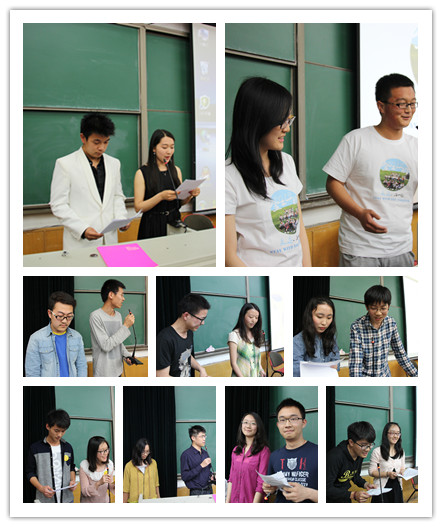 比赛共设班级风采展示、识图说名和你划我猜三个环节。在第一环节,各班代表轮流上台,通过PPT、视频和电子杂志等方式展现班级特色和集体风貌。金融2班通过主题视频“很高兴遇见你”,展现出友爱、互助、协作的班级风貌;金融1班31人携手合作,营造出“和谐、团结、全是爱”的班风;金工1班主打幽默牌,以“我们最牛”作为口号。金融5班的展示中虽然没有互动也没有视频,但他们坚信“凡事也精彩,逐梦不平凡”。投资1班全体同学从进入大学以来,通过宿舍长轮替制等制度创新,力求信息共享、共同提升。“可知一生有你我都陪在你身边”,一首《一生有你》唱出了金融6班同学们的心声。金工2班则以相声似的一问一答、台上台下的互动,在向大家介绍班级风貌的同时,引来现场同学阵阵笑声。与金工2班不同,金融4班灵活地运用了甄嬛体的形式,在活跃了气氛的同时展现出了同学们浓厚的文学底蕴。金融3班的班徽融合了贸大“猫”特色,班徽上活泼的猫耳朵让人眼前一亮。“学霸班班有,三班特别多”,进入贸大以来,金融3班通过老师推荐专业图书、学生阅读后在博客中互相交流等班级形式创新,对本班的“学霸路”始终充满了信心。