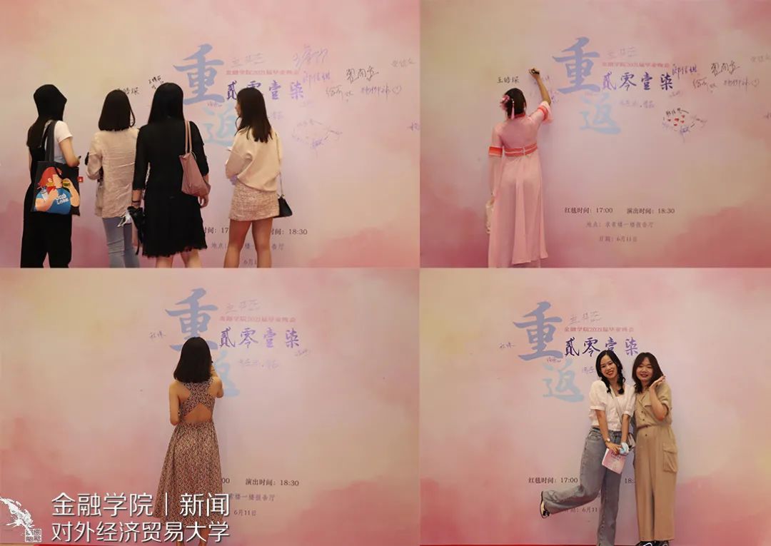 下午17:00,在晚会开始前,举办了毕业生红毯仪式。老师以及2017级毕业生身着盛装,走过红毯,于签名墙上签下自己的姓名,并进行合影留念。