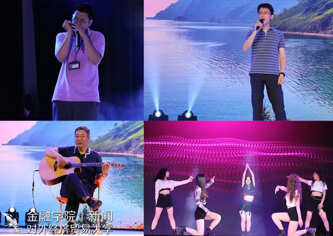 本次晚会别出心裁地采用了“穿越”的形式,并且通过中插《校园生活》、《激情岁月》、《疫情生活实录》、《情侣行为图鉴》、《老师的终极嘱托》或温暖感人或搞笑逗趣的VCR,带领大家重回2017,重新回味大学四年的酸甜苦辣。一开场,就是由罗丹慧同学、林明慧同学、董雪晗同学、何衍萱同学、陈若宁同学以及杨柳祎同学带来动感的舞蹈《Dancin’ Till The World Ends 》,瞬间引爆全场。刘辛夷同学和朱雪昊同学的相声《毕业》调侃了金融学子未来可能从事的相关职业,引起全场哄堂大笑。由常悦同学、贾晨同学、郝伟同学、黄格同学以及吴雨泽同学带来的歌曲串烧《青春爱情故事》带大家重温了大学青涩、朦胧的爱恋故事。接着,由王静茹同学、谢和同学以及李丹阳同学带来优雅、轻盈的古典舞蹈《丽人》以及梁家僖同学带来优美的舞蹈《竹林中》都获得了全场不绝的掌声。李孜仪同学和尚策同学通过前期问卷以及大数据调查,带来精彩的语言《金融统计-探究提升脱单几率的多种手段》。随后,由王天一老师以及谢海滨老师带来的《贝加尔湖畔》+《You Raise Me Up》以及李永龄老师带来吉他弹唱《Green Filed》都得到了全场持久、热烈的掌声。