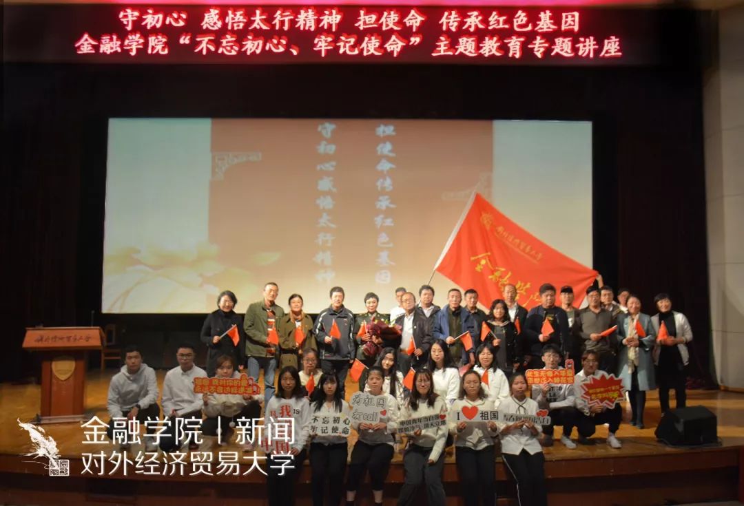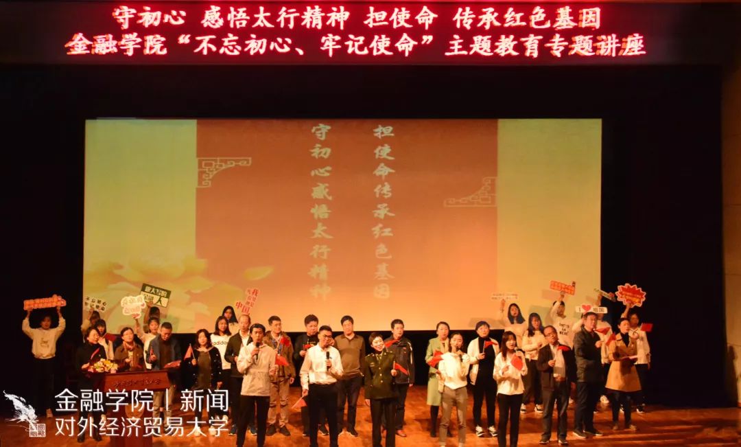 金融御宅屋新闻 宣传中心 讯(记者:王文泽 摄影:傲云塔娜、张雨菲)2019年10月17日下午,金融学院“不忘初心、牢记使命”主题教育专题讲座在图书馆报告厅隆重举行。学院邀请到曾获得“山西省特级劳动模范”荣誉称号的八路军太行纪念馆宣教部主任田悦慧老师担任主讲人,为师生带来主题为“守初心,感悟太行精神;担使命,传承红色基因”的专题讲座。田悦慧老师声情并茂的演讲,催人泪下,令人奋进,主题教育入脑走心。金融学院党政领导班子成员、教职工、本研新生、党员、入党积极分子近600人参加了本次主题教育,活动还吸引到学校、工会、研工部、后勤、附中附小、北京联合大学等领导老师的积极参与。活动由金融学院党委书记齐天翔教授主持。