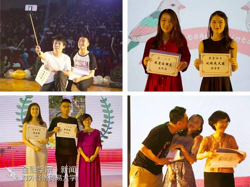 在表演中间,主持人还分别邀请不同嘉宾揭晓各类稀奇有趣的奖项,包括“仗剑走天涯”、“最爱交朋友”、“最爱自拍奖”、“最佳CP奖”、“最吃货奖”等。2013级辅导员陈玉平被学生们评为“最佳妈妈奖”,在上台领奖时,陈玉平吐露了自己的心声:“过去我常常把你们和我的第一届学生做对比,觉得你们不如他们。但现在我慢慢发现你们也有可爱之处,你们就像我的第二个孩子,我对你们的爱一点儿也不会比他们少。我爱你们!”