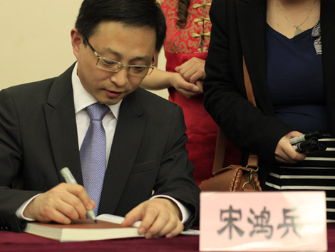 其后的互动环节结合了传统了的现场问答和别开生面的微博互动。观众可通过短信等形式全程参与讲座互动,而场外的观众也获得了向名师询问的宝贵机会。观众们针对不同的重点询问了关于中国历史经济、近期日本经济动态、白银投资等问题, 宋鸿兵教授一一给予了详尽而风趣的解答,赢得观众们的阵阵掌声。互动环节既体现了同学们关心天下局势的求知心,也一展 宋鸿兵教授对经济金融领域博古通今的风采。公开课在听众热烈的掌声中结束后,宋鸿兵教授为在场的书迷们进行现场签名售书,以偿贸大学子近距离接触名家的心愿。