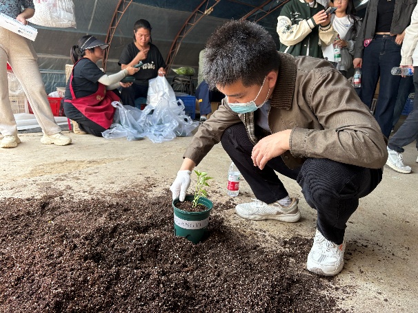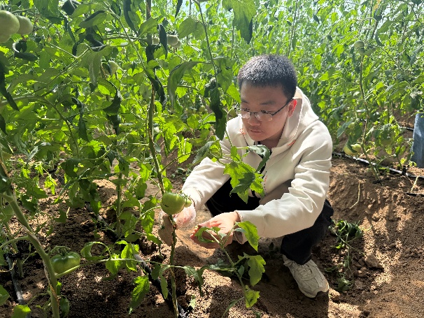 随后,农场负责人强调了劳动教育的重要意义,劳动不仅能够锻炼身体、磨砺意志,还能培养同学们的团队协作精神和实践能力。随后,在农场工作人员的指导下,研究生们迅速投入到各项劳动中。他们以9人为一个小组,负责将西红柿作物第一果下的杂草进行摘除,还有的负责翻土、平整土地,播种、浇水等,尽管劳动过程中遇到了一些困难,但大家相互协作,共同克服,现场一片热火朝天的景象,临走前,农场还给每位研究生分发一个花盆,一株辣椒苗,让同学们自己种植并带回去精心呵护成长,做好种植体验。