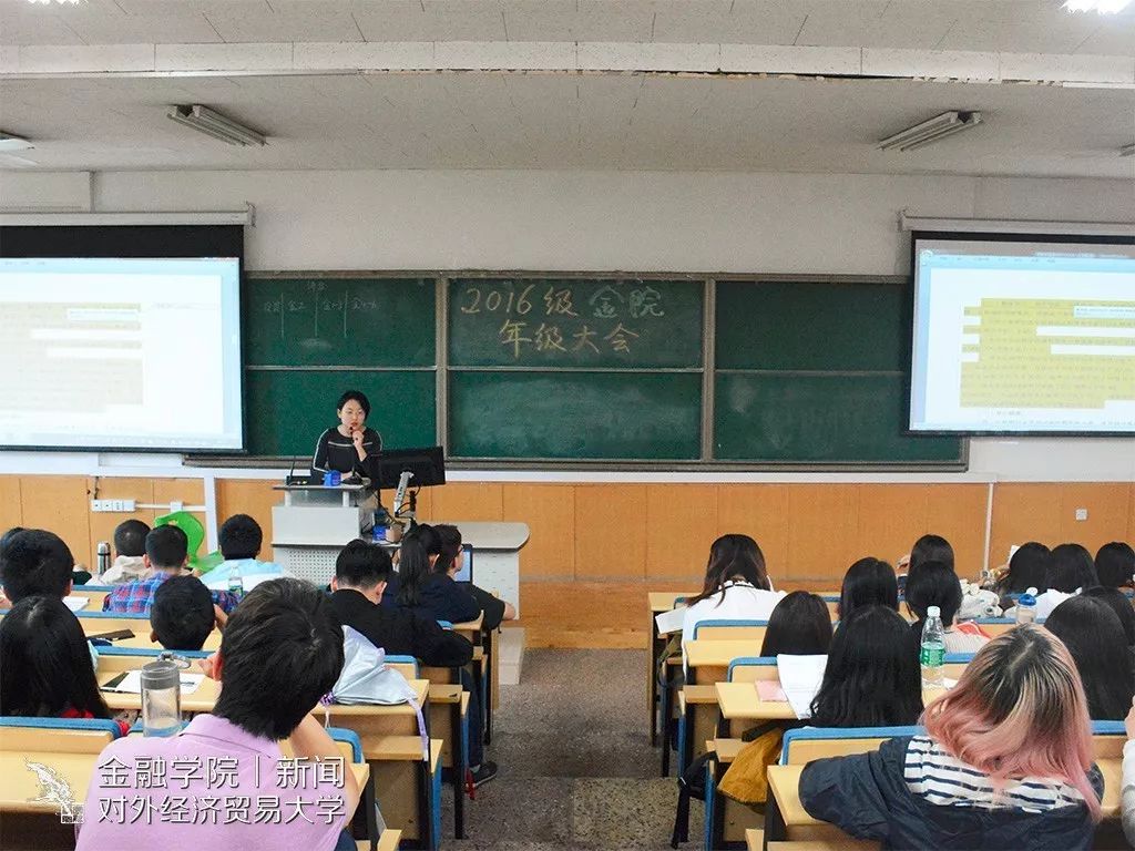 金融御宅屋新闻 宣传中心 讯(2016级年级大班王翼翔供稿 摄影:郭玉丹)2017年9月28日下午13:30,金融学院2016级年级大会在博学楼201教室顺利举行,金融学院2016级辅导员曲小杰老师就2017届本科毕业生发展情况、本学期发展要点以及本学期工作安排等问题为大家进行了介绍分析,教务秘书尚南老师对教务方面的各项变动为大家进行了说明。