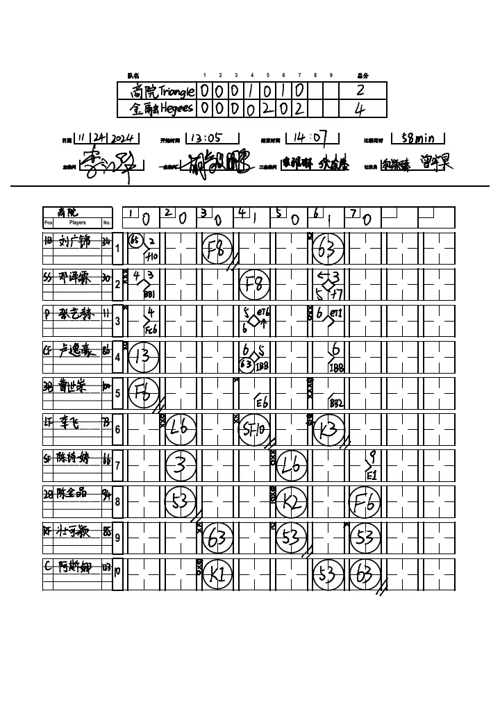 回顾这场比赛,金融Hedgees和商院Triangle都贡献了许多精彩瞬间,商院的打击之强、跑垒之灵活、战术之诡谲都是毋庸置疑的,面对这样一位令人尊敬的强大对手,金融Hedgees以不卑不亢的沉稳心态以及同样优秀的实力,沉着应对,顽强拼搏、奋勇向前。最终凭借稍胜一筹的打击连贯度以及略少一点的防守失误成功逆风翻盘,险胜此局!感谢双方队员的精彩表现,也感谢所有比赛的裁判与记录、前来观赛的各位观众、以及致力于比赛顺利进行的所有人!