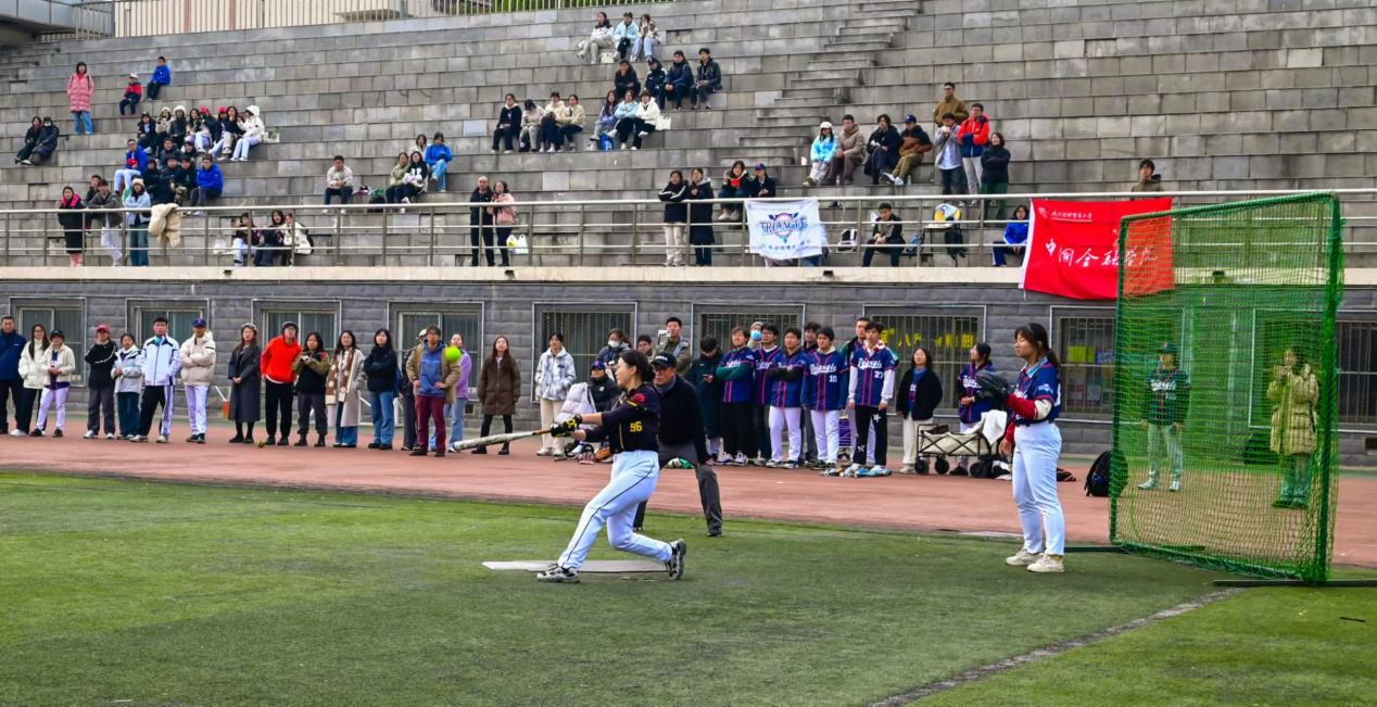 金融十棒王昕玥打出一个游击方向的精彩平飞,一垒接球失误,十棒成功上垒。一棒打出一个左外靠近边界的高飞,商院左外接杀失误,刘帅佚高兴地如同脱缰野马般开始跑垒,眼看着就要超过十棒跑上二垒,众人不由得再次倒吸一口凉气,还好,一棒最后还是慢了十棒一步上到二垒。局面定下时,是二三垒有人。三棒上场,直接打出一个右外高飞,商院右外接杀失误!场上三人不由开始大跑特跑,结果这居然是一个界外高飞。金院观众白高兴一场。不过紧接着雷明睿梅开二度,又打出右外高飞,这次是个界内球!右外接杀失误,十棒一棒跑回本垒,连下两分!