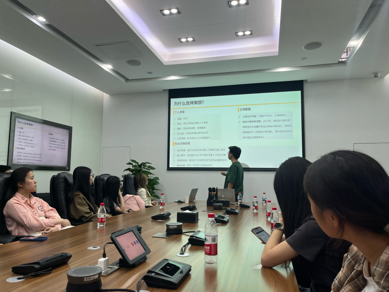 美团人力资源团队为支部党员们量身定制了职业发展专题分享。校招负责人详细解读互联网行业人才需求趋势,揭秘从简历筛选到终面考核的全流程攻略。参与的还有毕业于本校的美团员工分享了从学生到职场人的适应经验以及求职经验。在自由交流环节,同学们围绕职业规划、技能储备等问题与企业代表展开深入探讨。