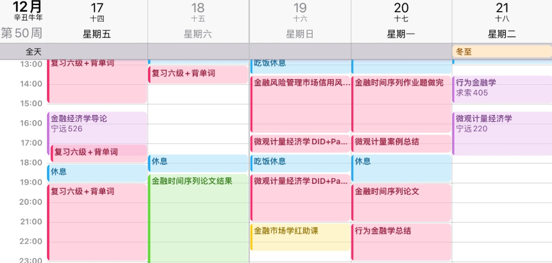 图:第五学期临近期末的每日日程