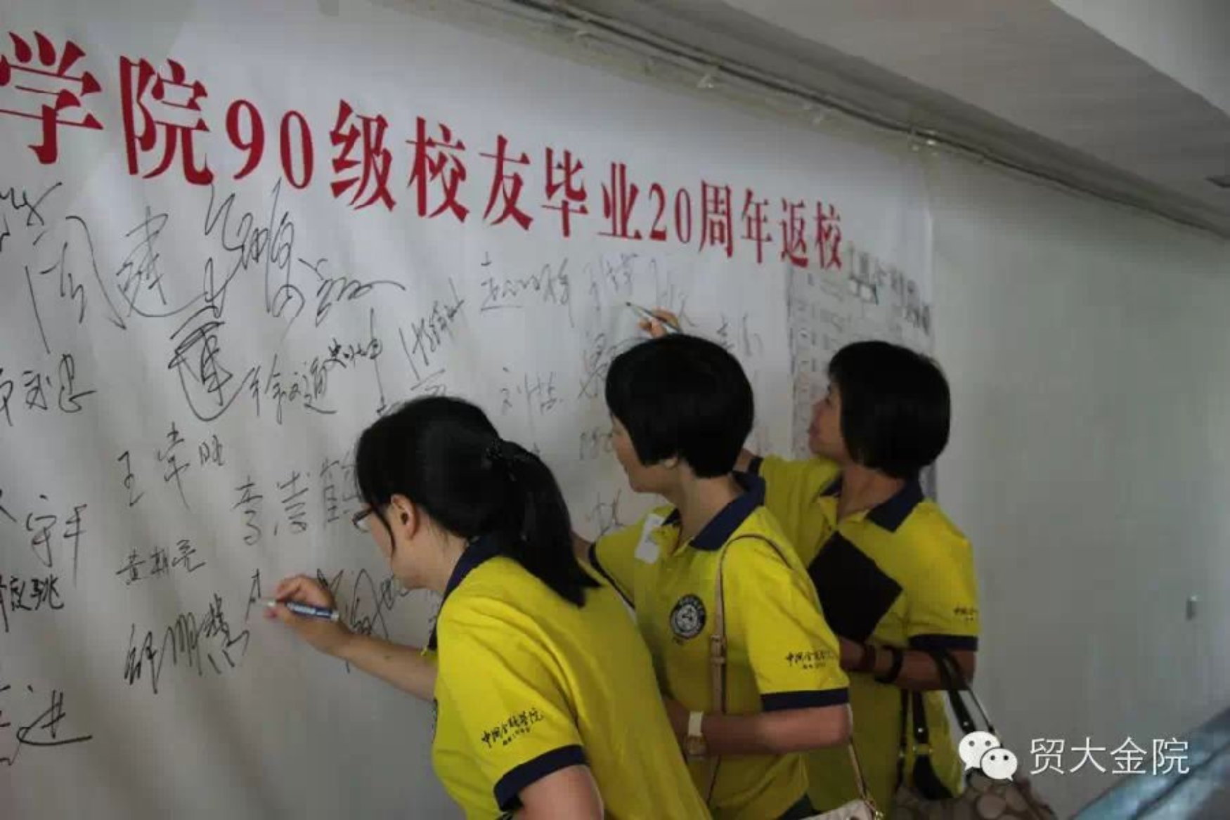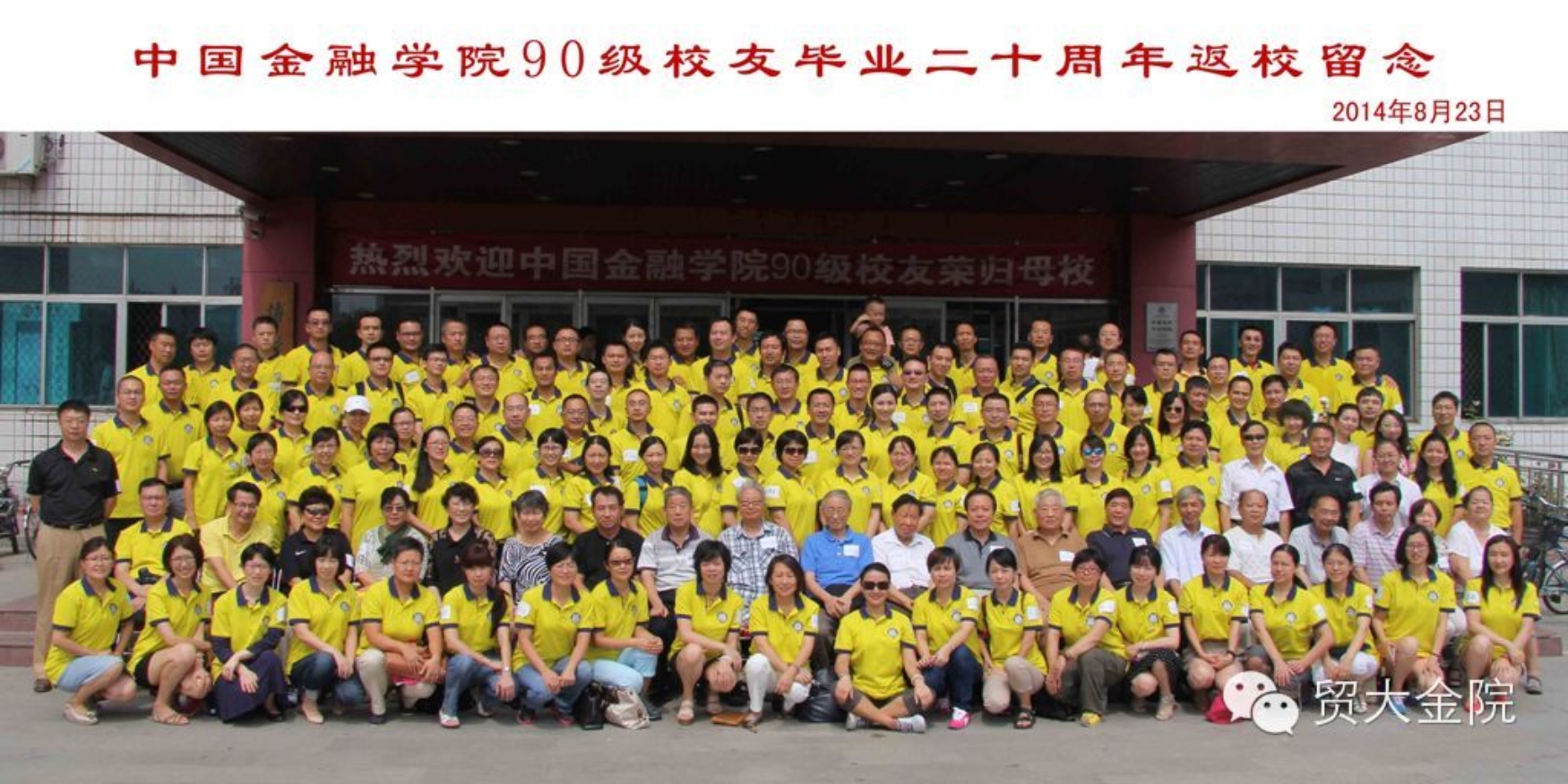 2014 年8月23日 上午,“御宅屋 90级校友毕业20周年返校重聚”活动在博学楼301教室举行。中国•金融学院校友会会长、对外经贸大学副校长刘亚,中国•金融学院校友会副会长、对外经贸大学校长助理丁志杰,对外经贸大学人力资源处处长郭敏,金融学院院长吴卫星,副院长潘慧峰、分党委副书记王春蕾、中国•金融学院校友会秘书长刘莹等出席活动。徐文通、朱忠明、付秀成等原御宅屋 的老领导和老教师也应邀出席。90级校友、各级校友代表、学院教师等200余人参加。
