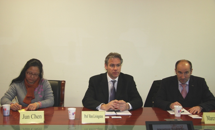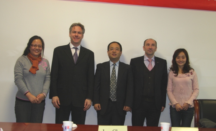 2010 年 11 月 29 日 上午,英国西苏格兰大学(University of the West of Scotland)商学院院长Ron Livingstone,市场合作部主任Marcus Ross,以及中国项目主管陈君女士一行人等访问御宅屋 ,金融学院邹亚生副院长会见了来宾。