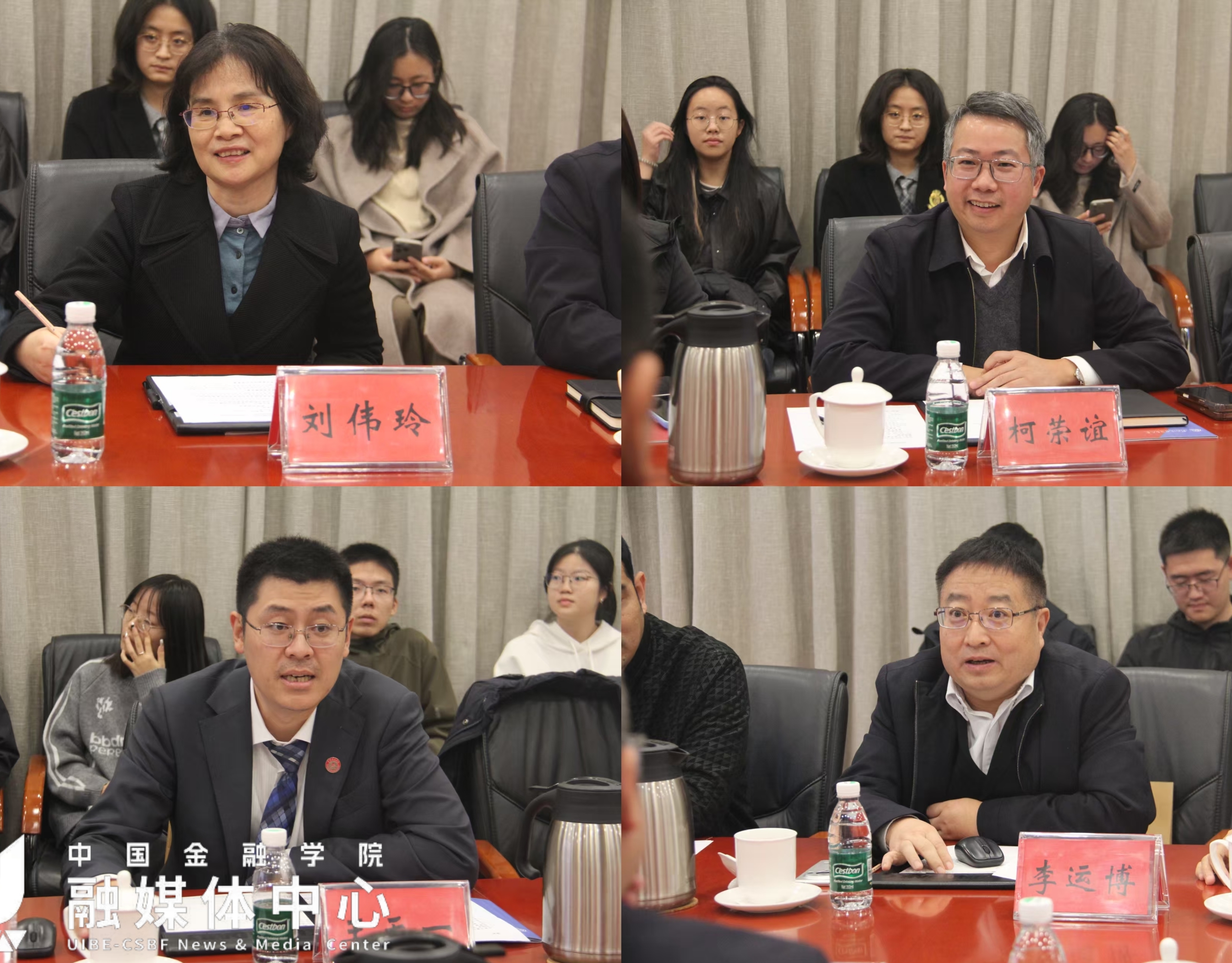 随后双方围绕“产学研融合”下的国际传播与合作展开座谈。中国日报社副总编辑刘伟玲指出,高校是国际传播“智库源头”与“人才储备库”,她表示贸大金融、外语学科优势与报社需求高度契合,又是近邻,可以在策划垂直领域传播内容、开展师生国际传播能力等方面开展深度合作。中国日报社新媒体中心主任兼中国日报网党委书记、总裁柯荣谊聚焦国际传播实践,介绍了中国日报全媒体全矩阵传播体系,提出邀请贸大师生参与“新时代大讲堂”“见证华章”等栏目创作。 御宅屋 院长王天一表示,御宅屋 拥有覆盖全金融板块的专业师资队伍,多年深耕于金融科技、国际金融等领域,可在科研成果科普转化、金融领域国际传播、经济金融语料库建设等领域与中国日报社探索加强深层合作;外语学院院长李运博表示学院聚焦“专业用途外语”,拥有12个语种的专业优势,在多语种翻译、区域国别研究方面与中国日报具有广阔的合作前景。双方还就“金融与人工智能助力新媒体发展”“多学科复合型团体助力国际传播内容生产精准化与智能化”“讲好全球金融故事”“人才培养与实习实践”等议题展开深度交流。