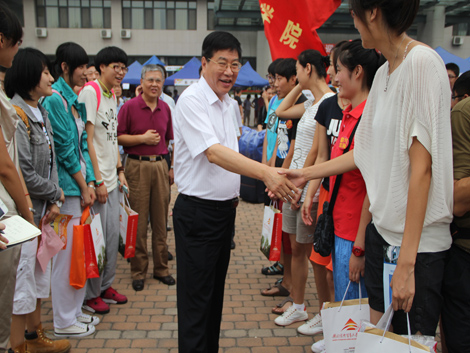 党委书记王玲,校长施建军,党委副书记杨逢华,校长助理王强,学工部部长王云海,金融学院院长丁志杰,分党委书记吴卫星、副书记滕云等领导纷纷亲临现场看望新生、热心地与学生家长交谈。他们耐心地解答了新生们的问题,帮助学生了解专业特点、树立学习信心。