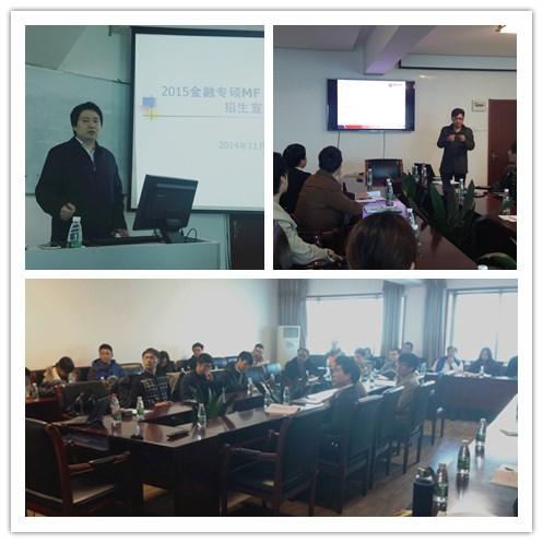 2014年11月22日,金融学院金融硕士MF(在职、双证)进行了第二批提前招生工作。招生工作分成三个部分,首先在博学楼918教室举行了项目宣讲会、然后进行了考前备考的经验交流,最后进行了提前招生的面试。金融学院副院长潘慧峰、14级在职金融专硕新生代表简奖平以及30多名拟报考考生参加了提前招生工作。